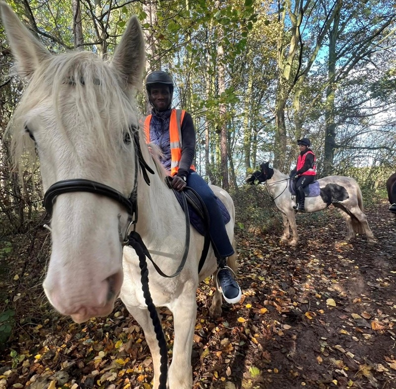The team at Derbyshire Pony Trekking Centre were very welcoming and supportive with Akano and spent time teaching him the basics so he could thoroughly enjoy the trek through the autumnal woods.