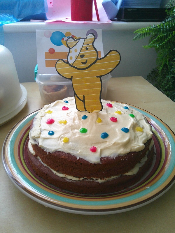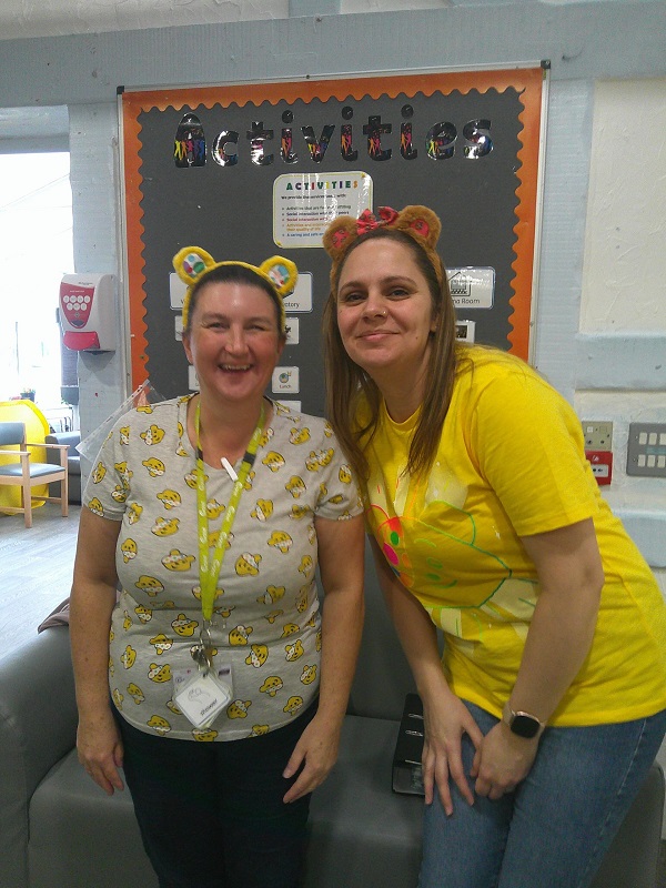 On Friday, they hosted a fun day in support of Children in Need. Staff and service users dressed in yellow or wore items with spots, and they baked goods for a bake sale. The day’s activities included bear pong, parachute games, bear-themed stories, sensory play, colouring, a Pudsey scavenger hunt, and watching Children in Need videos in the cinema room. There was also a photo booth where the service users and staff could take pictures with Pudsey Bear. In total they managed to raise £220.