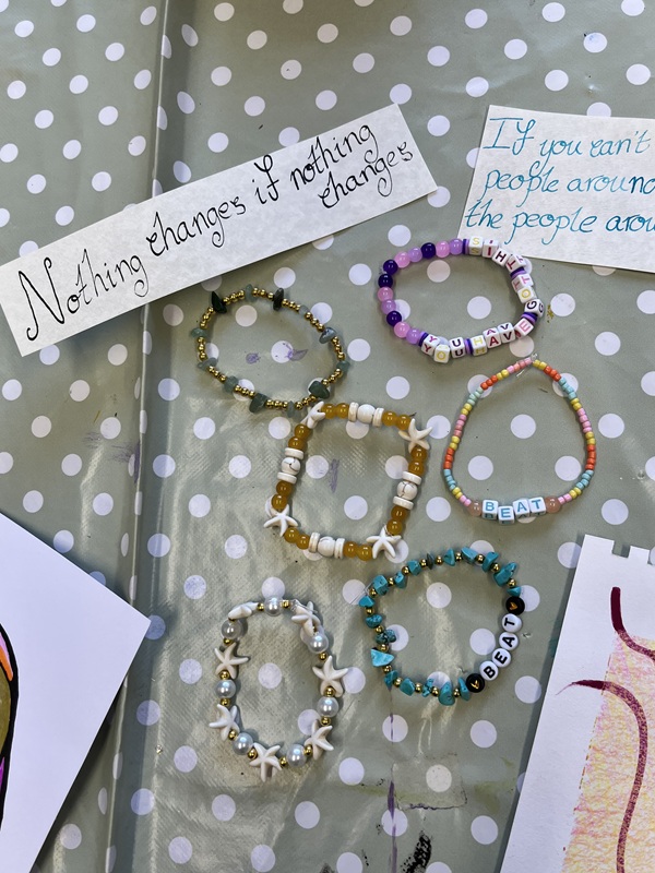 Whether carefully lettering a positive quote or picking out colours for a bracelet, these activities shift the focus from ‘perfection’ to the process. It’s about more than just the end product; it’s a creative space where people can practice patience with themselves, express their unique style, and build a sense of achievement that has nothing to do with their eating disorders.