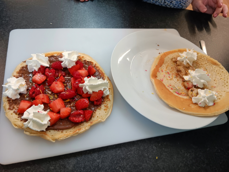 Everyone came together for a pancake‑themed lunch, choosing from a wide range of toppings including banana, blueberries, strawberries, raspberries, sprinkles, maple syrup, Nutella and cream. The afternoon was filled with games and connection as individuals and staff spent quality time together.