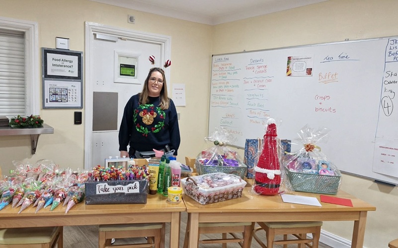 Service users worked closely with staff in craft sessions and a sewing group to make a variety of items, such as Christmas cards, wreaths and stockings, to sell at the event. There was also a tombola and a raffle to keep the donations rolling.