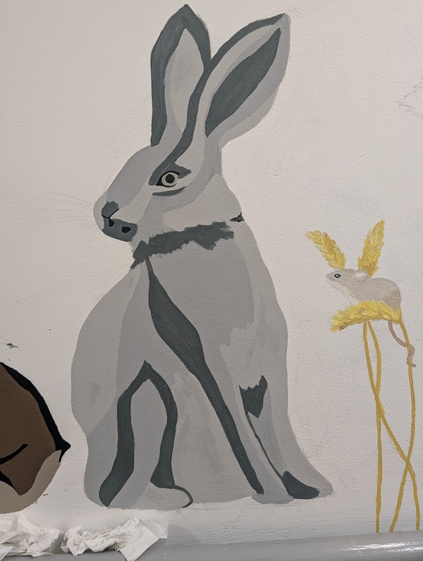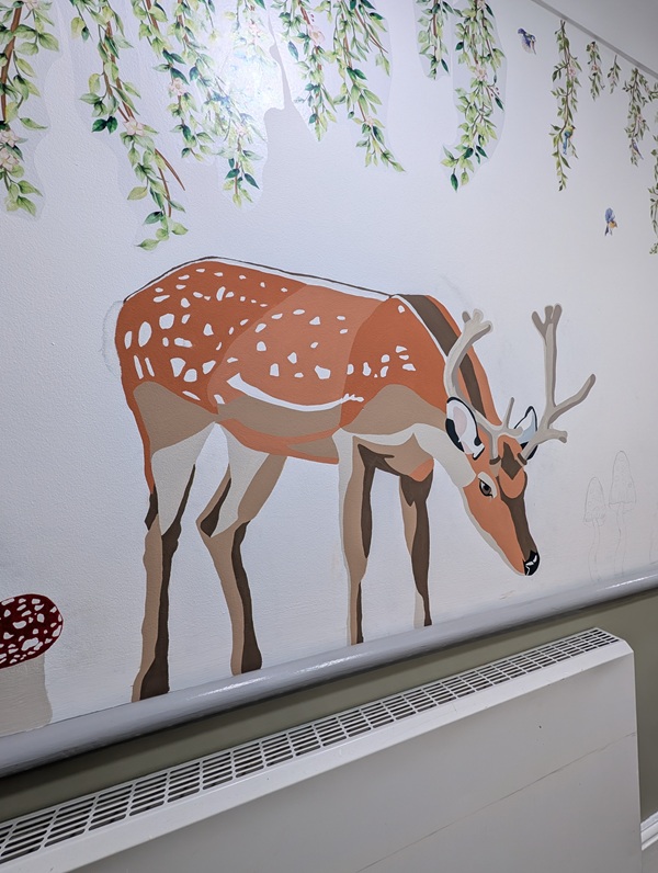 At the residents’ request, Bethany created a woodland-themed mural filled with a variety of animals in eye-catching colours. The area is now bright and welcoming with the likes of a deer, rabbit and fox taking centre stage on the wall.